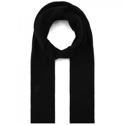 Шарф в чёрном цвете DONDUP. Шарф выполнен из тёплой пряжи с 95% кашемира и 5% шерсти в составе. Ширина шарфа 25 см, длина - 190 см. Аксессуар украшает вышитый логотип D внизу. Сделано в Италии.