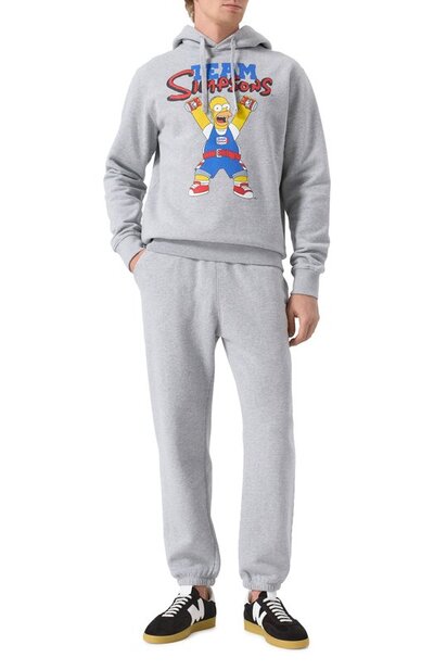 Меланжевое худи Tribeca украсили спереди изображением Гомера Симпсона и надписью Team Simpsons, а левый рукав дополнили логотипом бренда. Для пошива модели с регулируемым капюшоном использовали хлопок.