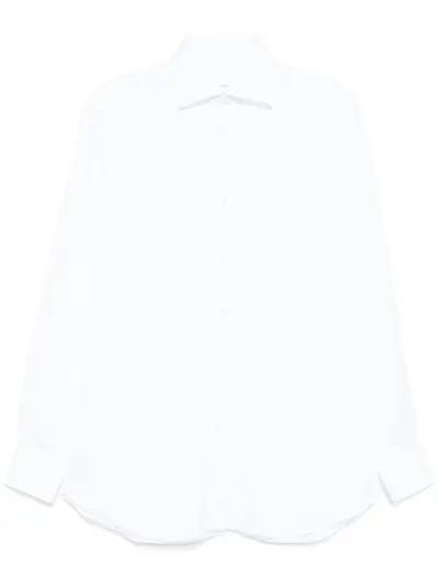 white cotton poplin texture front button fastening spread collar long sleeves buttoned cuffs curved hem