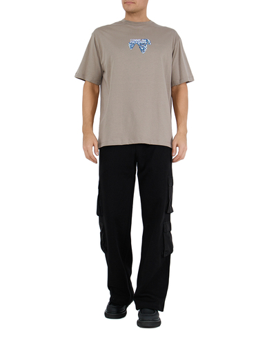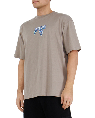 Футболка свободного кроя, с круглым горловым вырезом из 100% хлопка с принтом спереди и на спине. Модель будет идеально сочетаться с спортивным брюкам или джинсами.