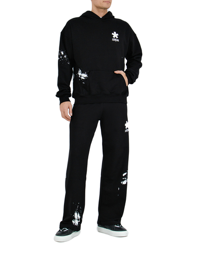 Худи оверсайз в черном цвете. Изделие изготовлено из высококачественного хлопка. Модель с капюшоном. На груди и на спине расположили печатный принт