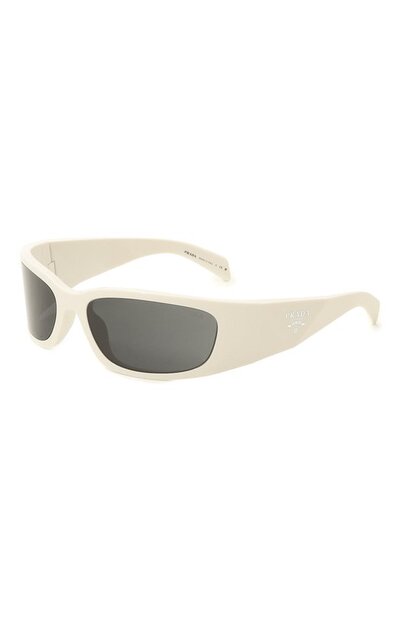 Солнцезащитные очки с широкими брендированными дужками впишутся как в женский, так и в мужской образ. Аксессуар выполнили из ацетата и дополнили затемненными линзами.