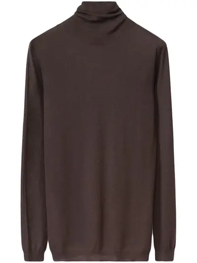 cedar brown cashmere blend knitted construction roll neck long sleeves ribbed cuffs and hem