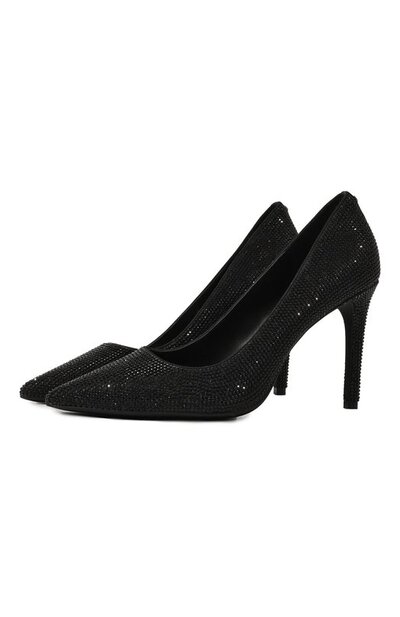 Туфли Alina Flex на высоком каблуке выполнили из текстиля и дополнили кожаной подкладкой. Модель полностью усыпали стразами, оставив без них лишь деталь сзади с накладкой в виде эмблемы бренда.