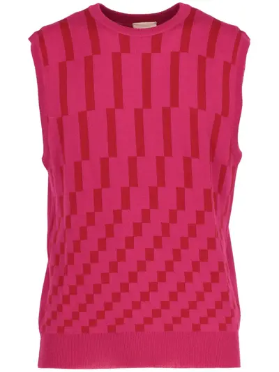 fuchsia pink virgin wool check pattern crew neck sleeveless ribbed hem Condition: GOOD. This previously owned and used item is in good condition with minimal signs of use. This may include fading of material or plating and scratches.