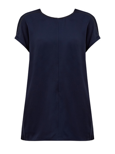 Fabiana Filippi Блуза из струящейся атласной ткани Sablé с ювелирной цепочкой 253974 (синий, lpn27982375)