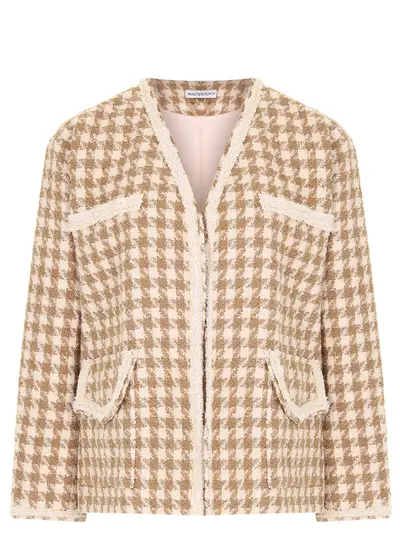 -Бежевый с узором однобортный жакет из фактурного твида с люрексом от MASTERPEACE.