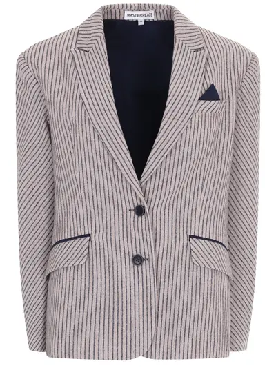-Бежевый в полоску однобортный пиджак купажированного состава от MASTERPEACE.