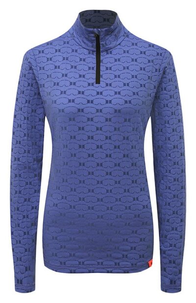 Облегающий пуловер Margo сшили из быстросохнущего трикотажа power stretch с флокированным паттерном и фактурной изнанкой. Высокий ворот дополнили молнией, а внизу рядом с боковым швом расположили ярлык с эмблемой.