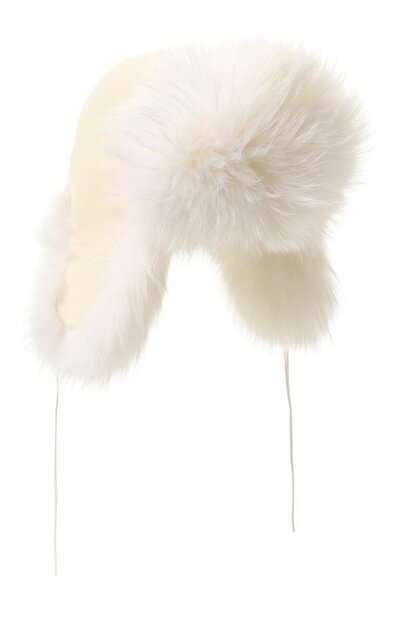Белую шапку-ушанку сшили из бархатистого плотного текстиля, защищающего от ветра. Внутреннюю и внешнюю отделку выполнили из шелковистого меха финского енота. Приятный на ощупь материал, выделанный вручную до легкости, обеспечивает комфортный микроклимат, хорошо удерживая тепло. Широкие наушники дополнили тонкими шнурами в тон.