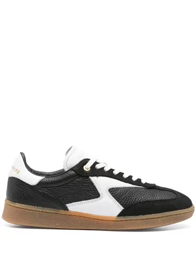 black/white calf leather colour-block panelled design front lace-up fastening contrasting branded heel counter grained texture panels logo-debossed tongue round toe padded ankle branded insole gum-rubber sole