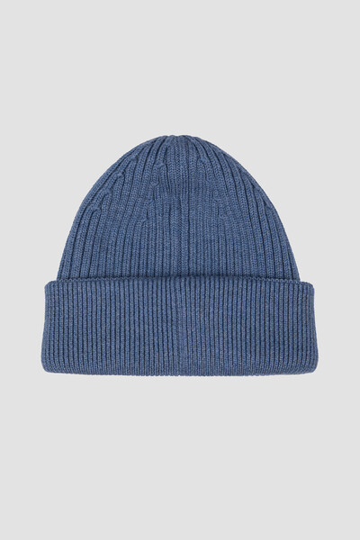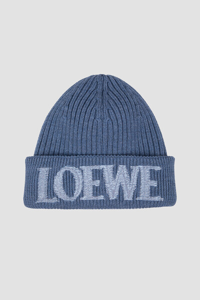 Синяя шапка бини от LOEWE. Для создания повседневного аксессуара выбрана мягкая шерсть. Материал хорошо сохраняет тепло, а широкая манжета-отворот не пропускает холодный ветер, поэтому модель обеспечит комфорт в непогоду. Принадлежность изделия Дому обозначена вышивкой в виде крупного логотипа спереди.