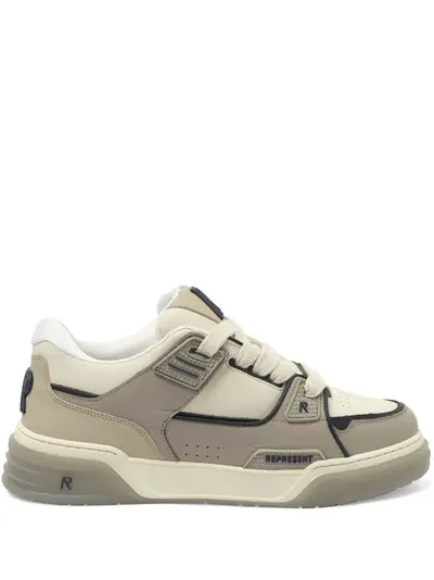 light beige front lace-up fastening logo patch at the tongue round toe flat rubber sole