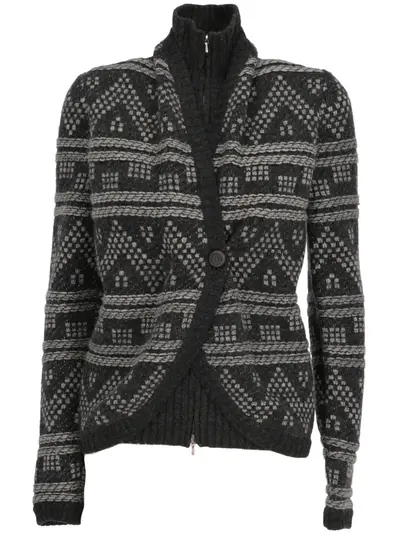circa 2004 dark grey cashmere blend patterned intarsia knit front button and zip fastening stand-up collar long sleeves Condition: GOOD. This previously owned and used item is in good condition with minimal signs of use. This may include fading of material or plating and scratches.