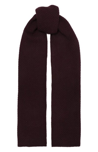 Длинный шарф с ребристым кантом на концах связали фактурной вязкой, имитирующей плетение, из кашемировой пряжи. Аксессуар оставили без декора, поэтому он дополнит образы с разной верхней одеждой.