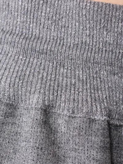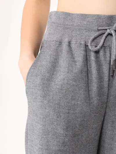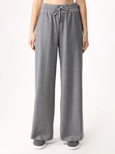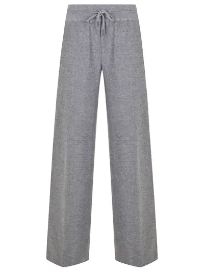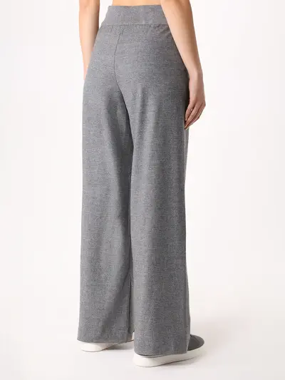-Серые брюки из тонкой смесовой шерсти от PANICALE. -Модель свободного силуэта с высокой посадкой, эластичным поясом на кулиске, прорезными карманами по бокам. -Брюки составят трикотажный комплект с легким джемпером.