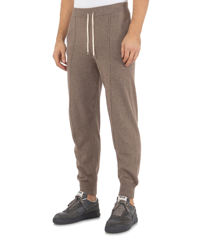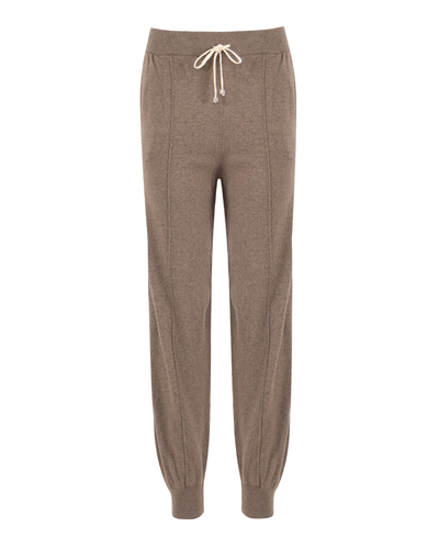 Эти брюки представляют собой идеальное сочетание утонченности и комфорта, выполненные в универсальном серо-коричневом цвете. Они созданы из мягкого трикотажа, обеспечивающего непревзойденное удобство при носке и стильный внешний вид. Посадка на талии регулируется изящным шнурком, который добавляет функциональности, оставаясь стильным элементом декора. Брюки имеют аккуратно оформленные боковые карманы, которые не только практичны, но и подчеркивают изящность силуэта. По всей длине брюк проходит изящный шов, который визуально вытягивает силуэт, придавая элегантности каждому движению. Манжеты из эластичного материала на щиколотках создают эффект слегка зауженной формы, делая акцент на современной динамичности образа. Эти брюки идеально подойдут как для повседневной носки, так и для создания утонченных, расслабленных образов благодаря своему универсальному дизайну и высококачественной отделке.