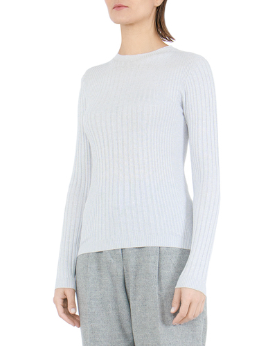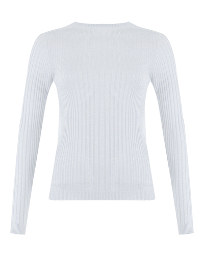 Этот джемпер выполнен в нежном голубом оттенке, который придаёт образу свежесть и воздушность. Изготовленный из эластичного материала с вертикальным рубчиком, он искусно подчёркивает элегантные линии тела и создаёт изысканный силуэт. Тонкая вязка обеспечивает лёгкость изделия, а прилегающий крой подчёркивает женственность, делая джемпер универсальным элементом как для деловых, так и повседневных ансамблей. Круглый вырез добавляет классический штрих, придавая облику лаконичность и сдержанную элегантность. Манжеты и нижний край выполнены с усиленной эластичной отделкой, что позволяет изделию сохранять идеальную форму и туго облегать тело. Этот джемпер станет прекрасной основой для создания многослойных образов, акцентируя внимание на вашем чувстве стиля и утончённости.