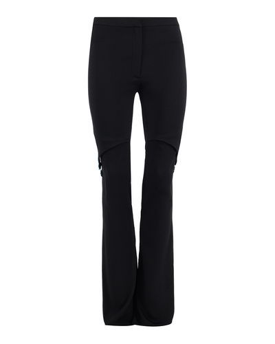 Эти брюки излучают современное очарование и идеальны для создания стильного образа. Выполненные из эластичного материала, они обеспечивают идеальную посадку, обтекая фигуру и подчеркивая ее достоинства. Фасон с облегающим верхом и расклешенными штанинами добавляет динамичности и уверенности в каждом движении. Элементы отделки, такие как декоративные разрезы со строчками, формируют игру текстур и объема, придавая брюкам особую изюминку. Высокая посадка удлиняет силуэт, создавая эффект стройности и легкости. Минималистичный пояс с потайной застежкой поддерживает общий современный стиль, что позволяет комбинировать брюки с различными топами и обувью. Мягкие линии и плавные переходы делают эти брюки универсальным элементом гардероба, который всегда актуален и впечатляет своей элегантностью. Отличный выбор для тех, кто хочет подчеркнуть уникальный стиль и индивидуальность.