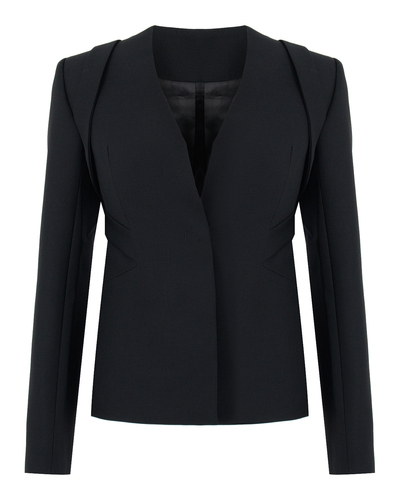 Этот жакет — олицетворение сдержанной элегантности и современного шика. Изготовленный из изысканной ткани, он создает эффектный и яркий образ, идеально подходящий для уверенной леди. Сложная архитектурная конструкция силуэта подчеркивает фигуру, выделяя талию и добавляя выразительность всему образу. V-образный вырез визуально вытягивает линию шеи, создавая ощущение легкости и изящности. Элементы отделки включают в себя фигурные швы, которые добавляют динамику и акцентируют внимание на безукоризненной посадке. Дополнительные детали на плечах придают образу структурированность и драматичность. Отсутствие видимой фурнитуры способствует минимализму и акцентирует внимание на чистых линиях и безупречной отделке. Этот жакет станет роскошным дополнением как к деловому ансамблю, так и к вечернему комплекту, являя собой образец высокого вкуса и элегантности.