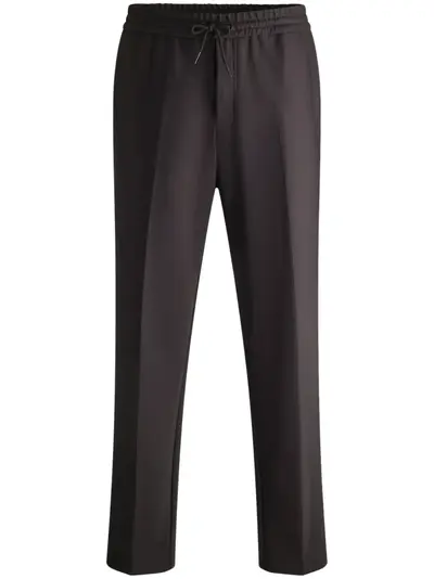 black elasticated drawstring waistband two side slit pockets rear welt pocket logo patch to the rear