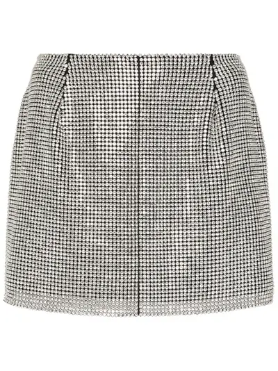 silver high-waisted crystal embellishment rear zip fastening thigh-length