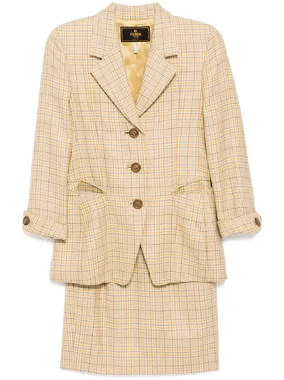 circa 2000s butter yellow wool blend jacket button fastening long sleeves notched lapels buttoned cuffs skirt rear zip fastening straight hem Condition: GOOD. This previously owned and used item is in good condition with minimal signs of use. This may include fading of material or plating and scratches.