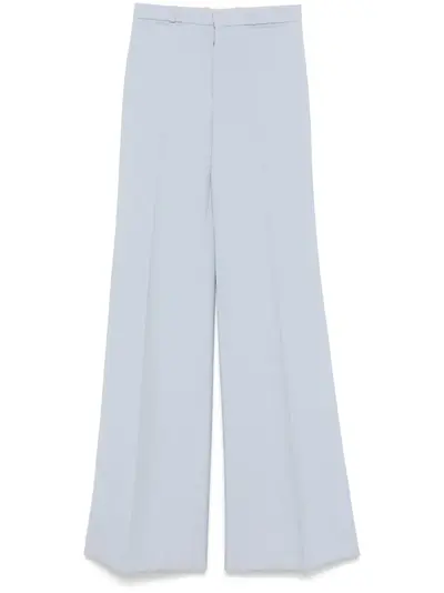 light blue cady texture concealed front fastening belt loops concealed front fastening high waist pressed crease two front welt pockets tailored cut wide leg