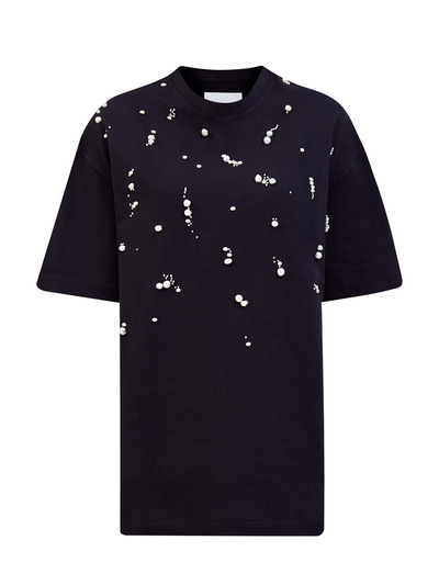 Jil Sander Хлопковая футболка-oversize с жемчужными бусинами 254676 (чёрный, lpn28086123)