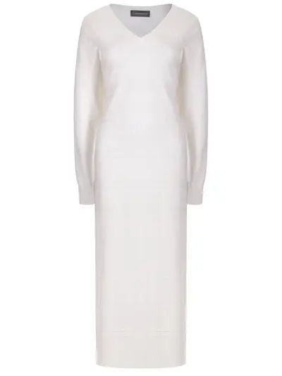 -Трикотажное платье-миди из мягкой смесовой шерсти молочного цвета от LORENA ANTONIAZZI.