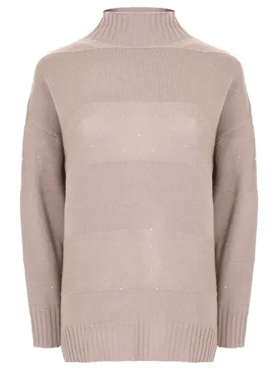 -Свитер расшит мелкими пайетками в тон, которые добавляют изделию сдержанные блики.