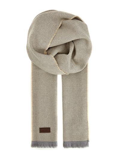 Мужской шарф от Canali выполнен из мягкой шерсти и кашемира, переплетение волокон серого и бежевого оттенков придает поверхности объемный эффект. Благодаря полностью натуральному составу аксессуар сохраняет тепло и защищает от ветра. Фирменный штрих — нашивка из кожи с брендированным тиснением. Короткая бахрома на кромках завершает дизайн. Сделано в Италии.