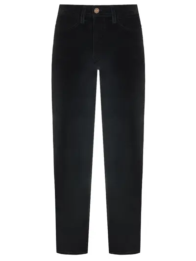 -Темно-зеленые брюки из фактурного хлопкового вельвета от JACOB COHEN. -Модель прямого кроя со стандартной посадкой, поясом со шлевками, прорезными и накладными карманами, застежкой на пуговицы, нашивкой с логотипом бренда сзади.