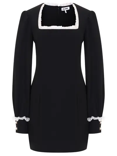 -Черное мини-платье коллекции Flash Royal из легкой костюмной ткани от ALINE.