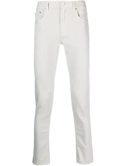 off-white stretch-cotton denim logo patch to the rear logo-embossed buttons belt loops button fly fastening classic five pockets slim cut