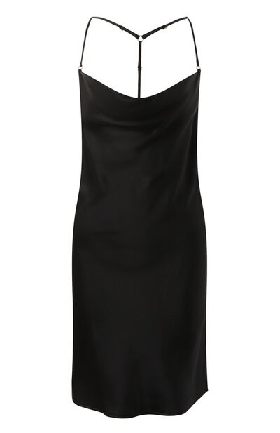 Шелковую сорочку оттенка Smoky Attraction декорировали сзади тюлевыми вставками с вышивкой. Модель с мягкой драпировкой спереди и регулируемыми Т-образными бретелями вошла в коллекцию Midnight Storm.