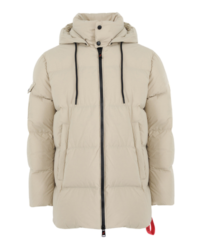 Этот пуховик представляет собой гармоничное сочетание функциональности и современного стиля. Модель выполнена из прочного водоотталкивающего материала в нежном бежевом оттенке, привносящем в образ легкость и утонченность, а также обеспечивающим защиту от ветра и влаги. Пуховик облачён в объемный стеганый дизайн с равномерными секциями для распределения легкого и теплого пуха, что обеспечивает максимальное утепление и комфорт в холодное время года. Элегантный капюшон оснащен регулируемым шнурком и дополнительной защитной планкой на кнопках, создающей уют и добавляющей завершающий штрих в дизайн. Центральная застежка-молния выполнена с контрастными деталями, подчеркивающими уникальность модели. Функциональные боковые карманы с удобным доступом добавляют практичности, а декоративный элемент в виде небольшого значка на рукаве придает легкую динамичность стилю. Манжеты с прочным резиновым обрамлением подчеркнуты изысканностью и модным минимализмом. Этот пуховик — идеальный выбор для стильного городского жителя, который ценит качество, тепло и элегантность в своем ежедневном образе.