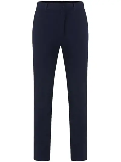 navy blue front button fastening rear elasticated waistband two side slash pockets two rear welt pockets
