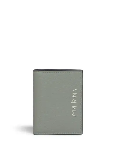 light blue calf leather grained texture bi-fold design press-stud fastening embroidered logo to the front note compartment internal card slots coin pocket debossed internal logo contrast lining