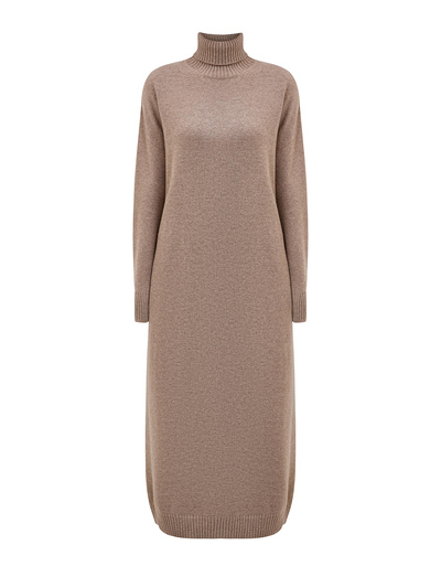 Brunello Cucinelli Кашемировое платье с воротом английской вязки и цепочкой Мониль 255304 (бежевый, lpn28335276)