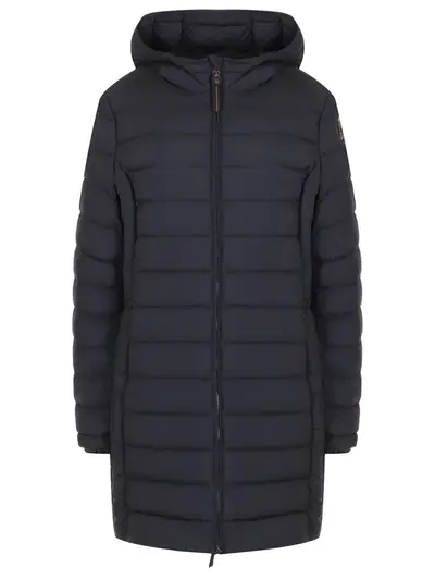 -Модель с кроем по фигуре, длинными рукавами, эластичными манжетами, высоким воротником, переходящим в капюшон, застежкой на молнию с двумя пуллерами.