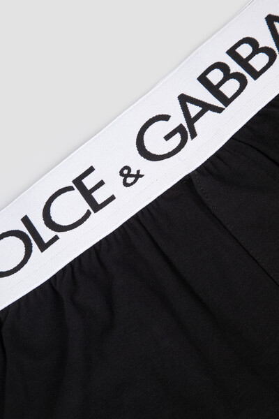 Длинные боксеры-шорты чёрного цвета от DOLCE & GABBANA. Модель изготовлена на основе хлопка и дополнена плотным эластичным поясом-резинкой для оптимальной посадки. Изделие из такого материала хорошо пропускает воздух, быстро отводит влагу от тела и комфортно садится по фигуре, не ограничивая движения. Атрибутом Дома является крупный принт в виде логотипа на контрастном поясе.