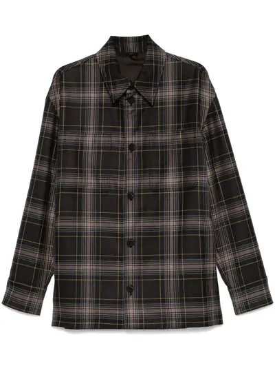 coffee brown front button fastening chest patch pocket buttoned-cuff sleeves straight-point collar