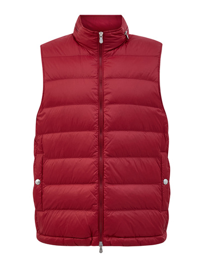 Лаконичный мужской жилет от Brunello Cucinelli выполнен из влагозащитного стеганого нейлона. Легкая утепляющая прослойка из пуха и пера надежно защищает от ветра, минималистичный дизайн идеально подходит для создания многослойных образов в период межсезонья. Детали: потайной капюшон на молнии, внутренняя нашивка для инициалов владельца, прорезные карманы с бортами на кнопках. Сделано в Италии.