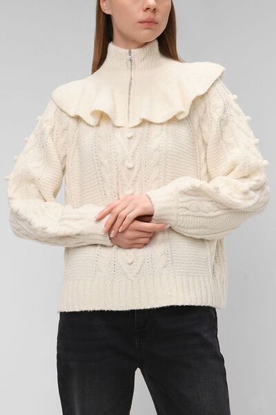 Вязаный пуловер с воротником на молнии Whistles 1284038 (бежевый, lpn28478612)