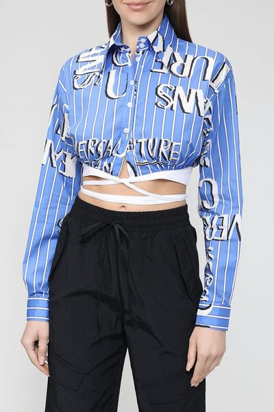 Укороченная рубашка в полоску Versace Jeans Couture 4057707 (синий, lpn28480799)