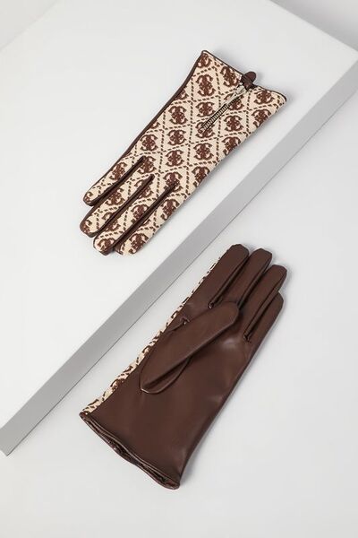 Комбинированные перчатки с принтом из логотипов Guess 5048941 (коричневый, lpn28482011)