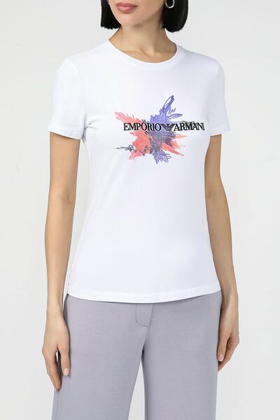 Футболка хлопковая с принтом Emporio Armani 5259436 (белый, lpn28483237)