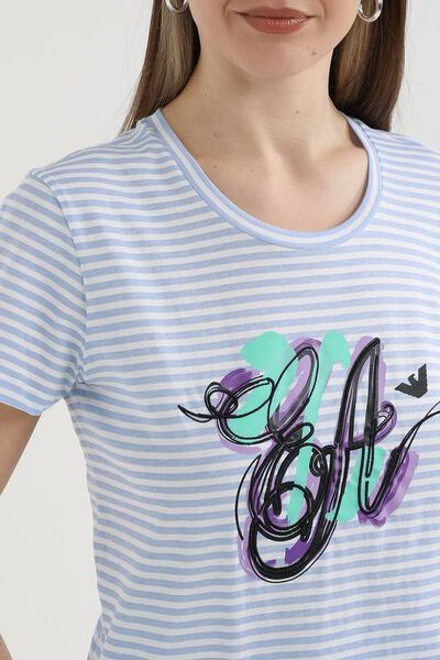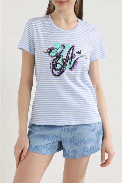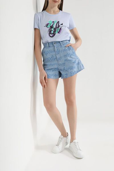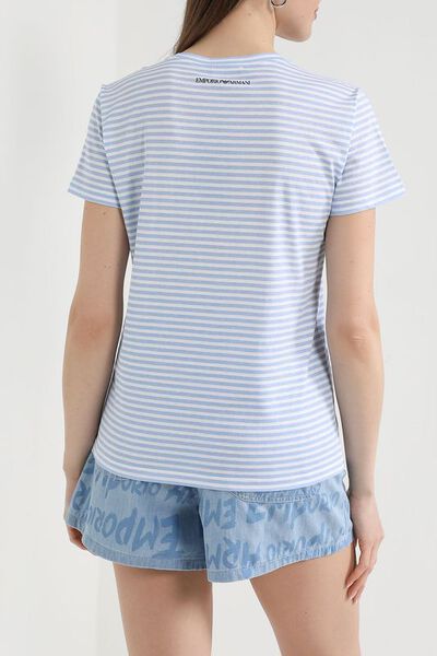 Футболка хлопковая в полоску с принтом Emporio Armani 5259673 (голубой, lpn28483251)