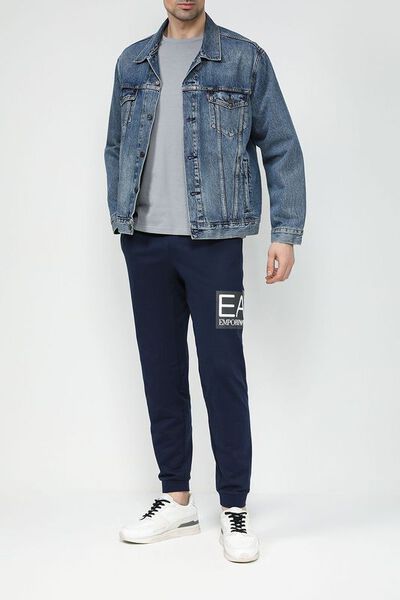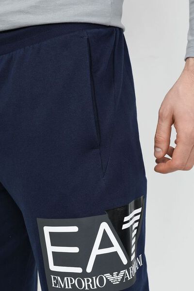 Джоггеры хлопковые на кулиске с логотипом Ea7 5347660 (синий, lpn28483562)